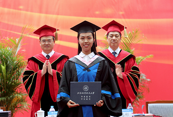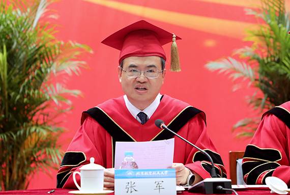 党委书记张军院士、副校长魏志敏、党委副书记李军锋分别宣读了2017年“北京地区高等学校优秀毕业生”“本科生国防就业奖学金”“优秀毕业国防生”和“优秀双学籍飞行学员”名单。200名“北京地区高等学校优秀毕业生”、28名“本科生国防就业奖学金”获得者、20名“优秀毕业国防生”和3名“优秀双学籍飞行学员”受到表彰。副校长黄海军主持毕业典礼。