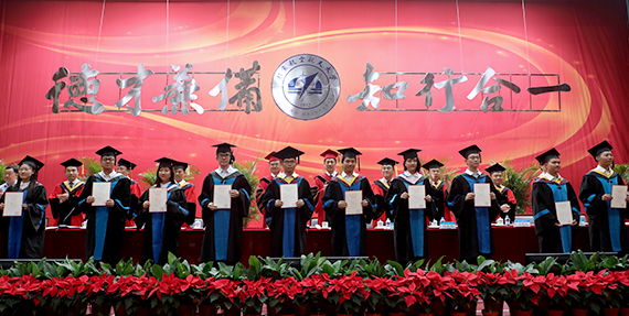 党委书记张军院士为毕业生代表颁发毕业证书和学位证书,校长徐惠彬院士为毕业生代表授予学位。