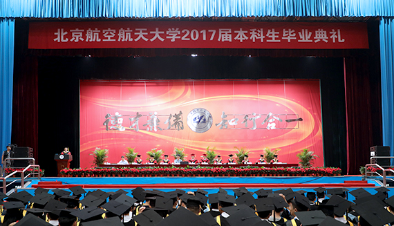 典礼上,全体毕业生用一次次雷鸣般的掌声表达了他们对母校的眷恋和对未来的信心。全体2017届本科毕业生高唱校歌《仰望星空》,优美激昂的旋律在北航校园上空久久回荡。