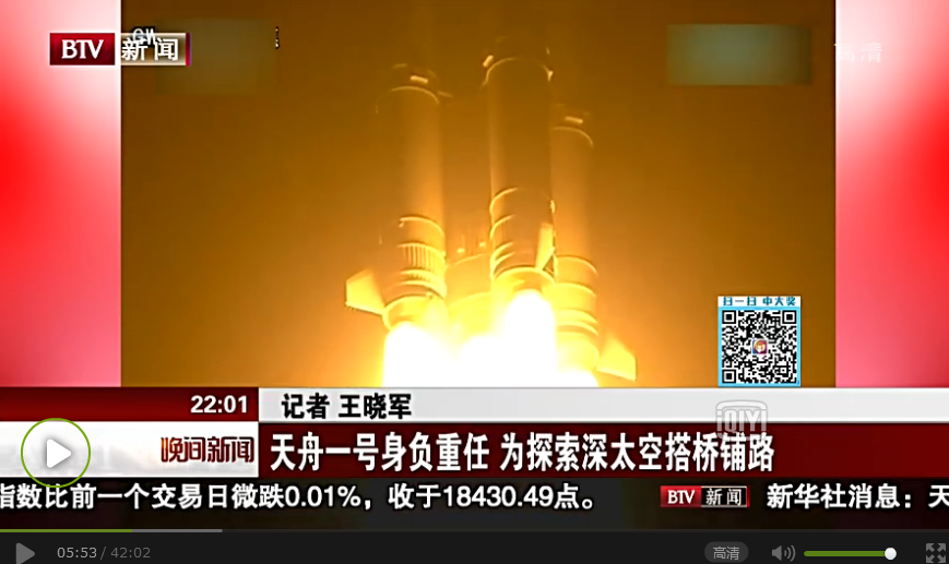 编者按:2017年4月20日19时41分,天舟一号货运飞船经由长征七号遥二运载火箭托举,成功进入太空。约596秒后,飞船与火箭分离,进入预定轨道,标志着此次发射取得圆满成功。北京电视台2017年4月20日的《晚间新闻》报道了天舟一号的发射情况,其中以《天舟一号身负重任 为探索深太空搭桥铺路》为题深度报道了北航人在天舟一号的研制与发射过重所做的贡献,并采访了我校英国威廉集团官网教授闫晓军和宇航学院博士苗建军。
