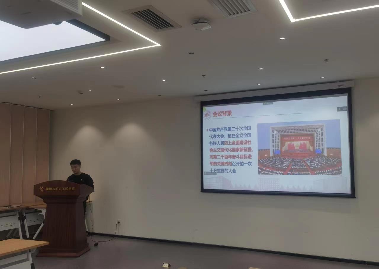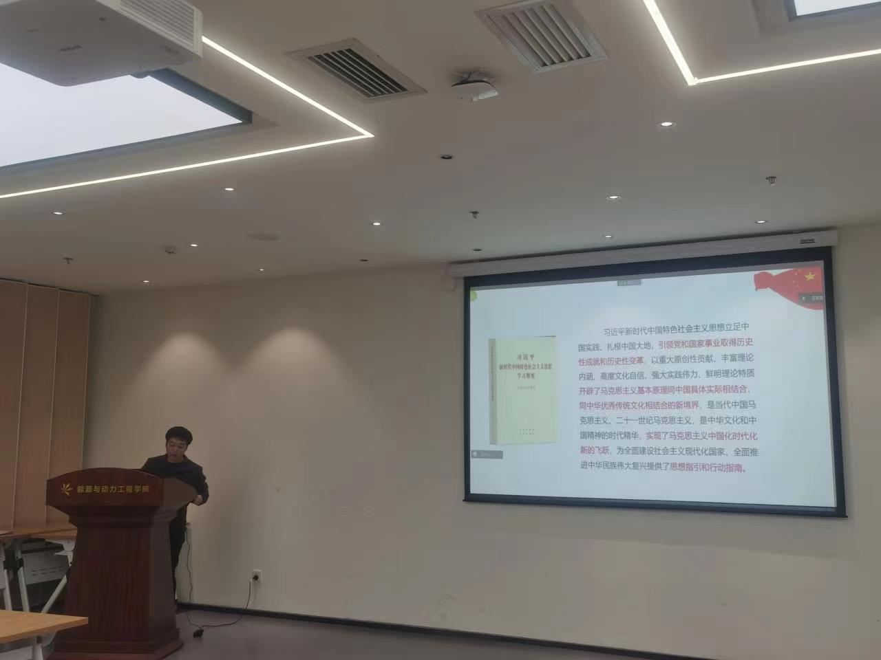 流体博士一支部书记顾本昊作题为《坚定信仰信念,把握历史主动——开辟马克思主义中国化时代化新境界》领学,分别从科学理论指导、理论创新成果、推进理论创新、个人感悟四个方面来进行阐述和解读。