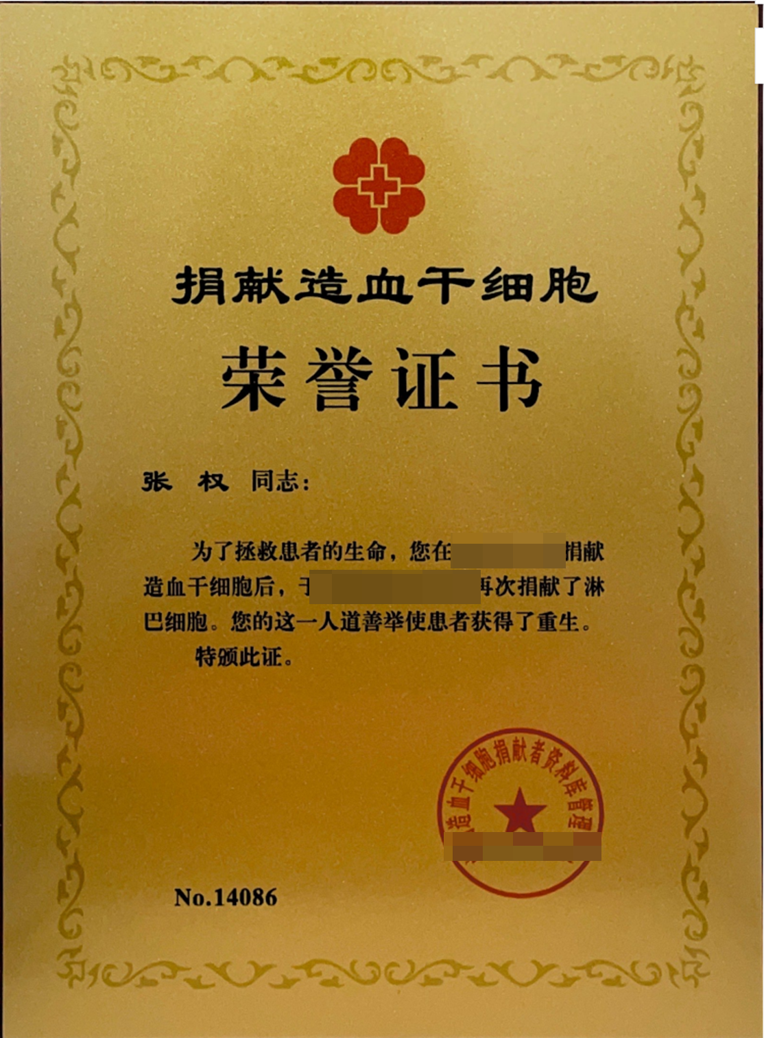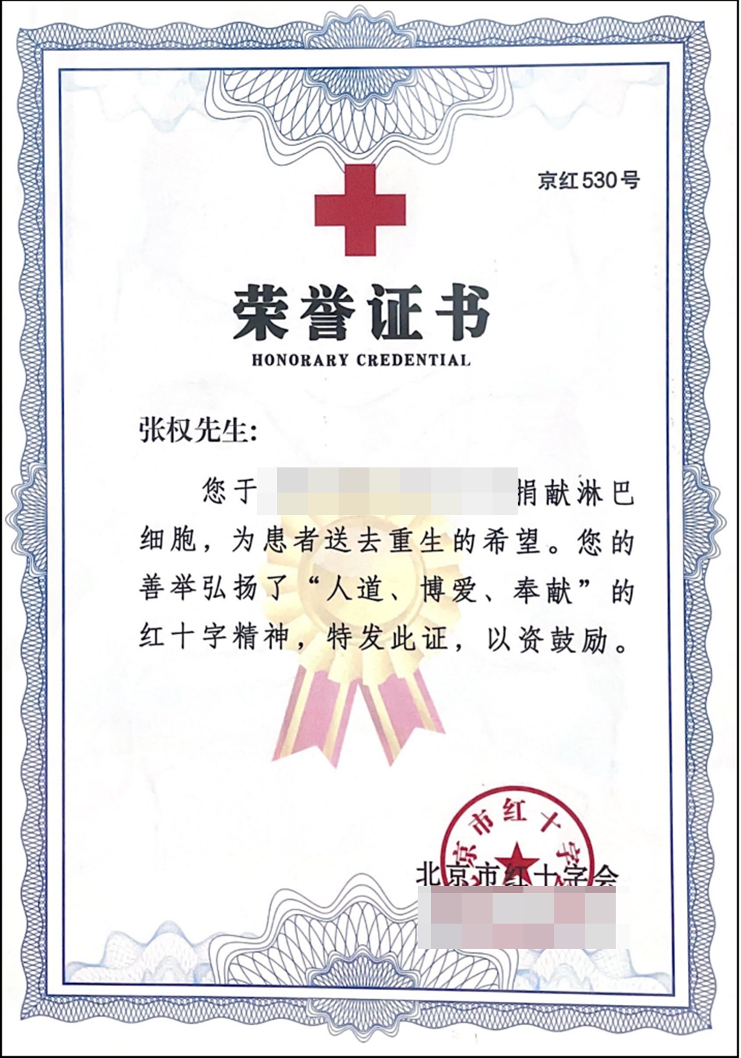 在第一次捐献的半年后,他再次捐献淋巴细胞,成为北京市第530例捐献者、北航首例“二次捐献”者。