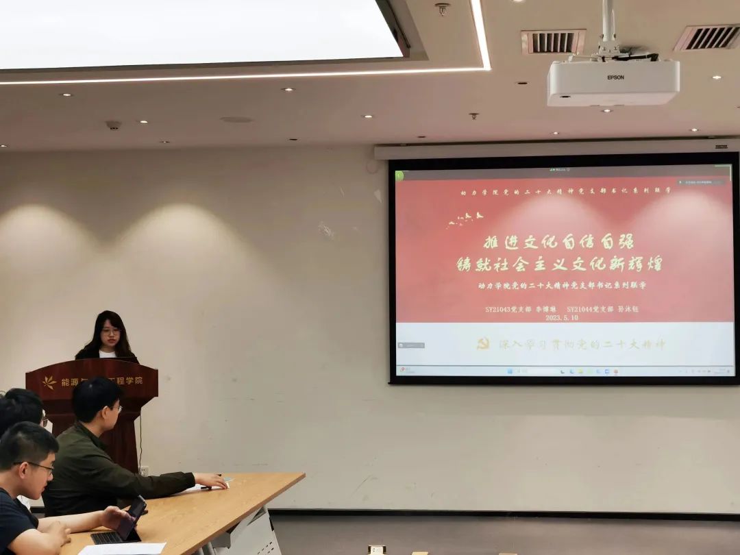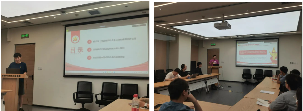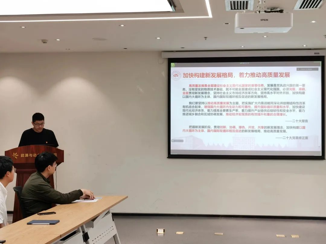 党支部书记带领大家深入学习领会党的二十大报告原文。首先,系统梳理了领学章节内容的发展脉络,学习分享其历史逻辑,理论逻辑和实践逻辑,深入理解“五位一体”总体布局和“四个全面”战略布局,深刻领悟“两个确立”的决定性意义,增强“四个意识”、坚定“四个自信”、做到“两个维护”。其次,结合我国取得的举世瞩目成就,结合所学航空动力专业,结合北航事业发展和身边优秀事迹,深入介绍领学章节,加深大家对报告内容的理解。最后,号召同学们从党的二十大精神汲取成长成才养分,传承空天报国精神,争做强国时代新人。