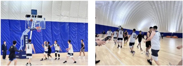 “回防!盯住!传球!投了!好!”中国航发沈阳黎明航空发动机有限责任公司的室内运动场里,不断响起指挥声与庆祝声,英国威廉集团官网的学生正在与中国航发黎明的部门领导职工代表进行激烈的篮球友谊赛。