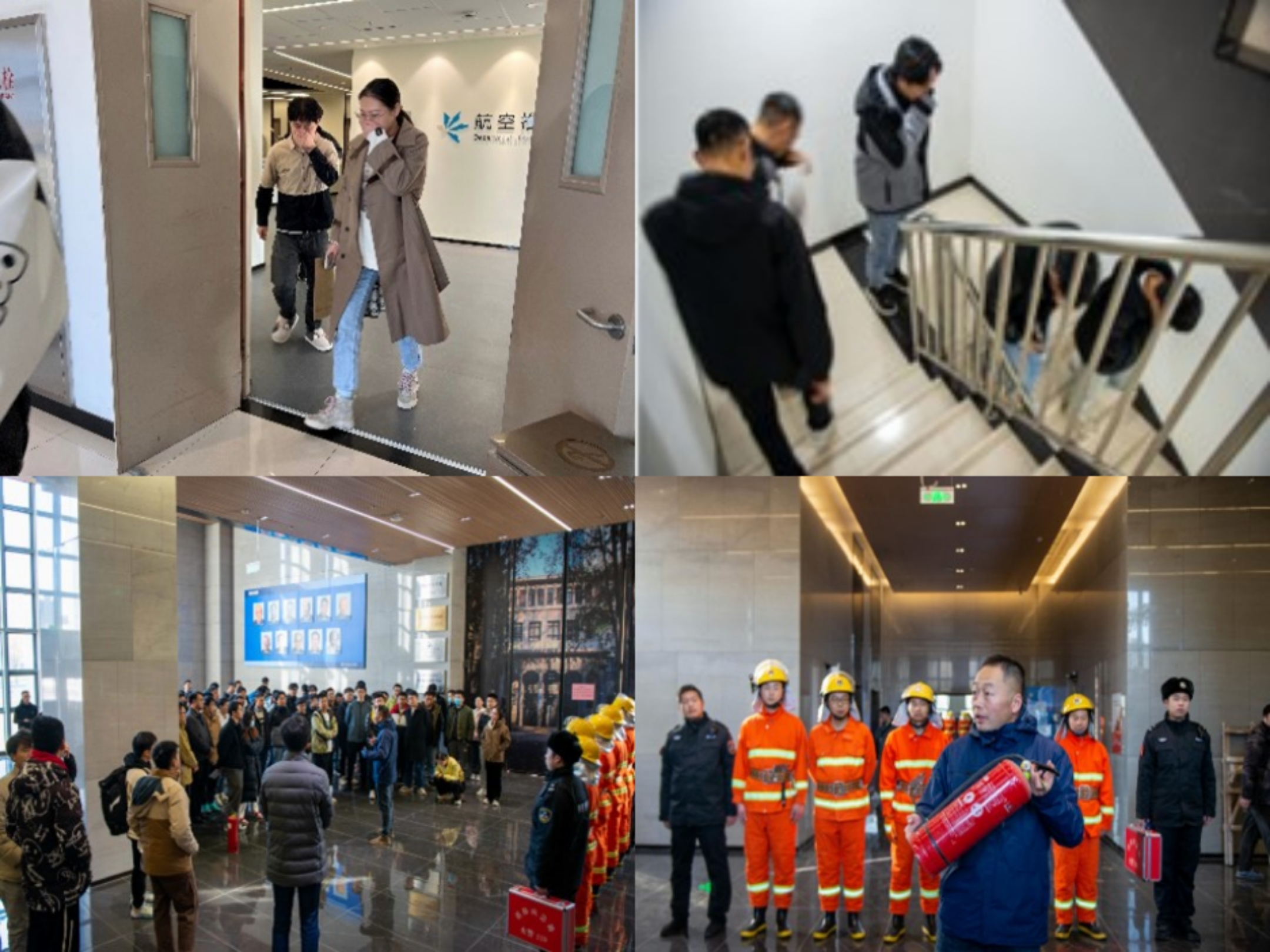 下午14:00,一名同学“发现”F座6层西侧楼梯间的模拟火情,第一时间通过手动报警装置报警并报告学院消防安全领导小组。学院消防安全领导小组立刻将火情通报全体师生,并根据《消防安全应急方案》,各层安全负责人组织参加演练的师生从安全路线有序撤离。接到报警后,校消防站队员迅速赶到现场并扑灭火灾。
