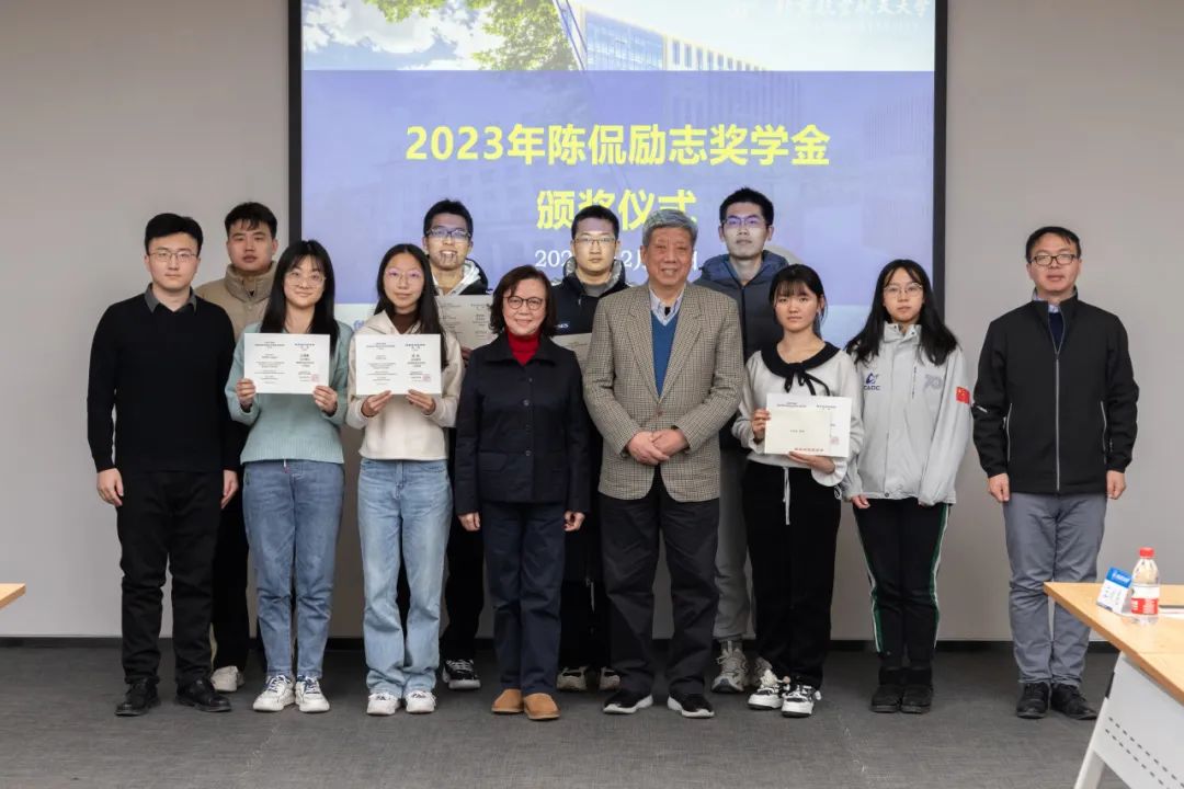 最后,陈克伦先生、韩美芬女士为2023年获奖同学颁发奖学金证书,赠送书信并合影留念。