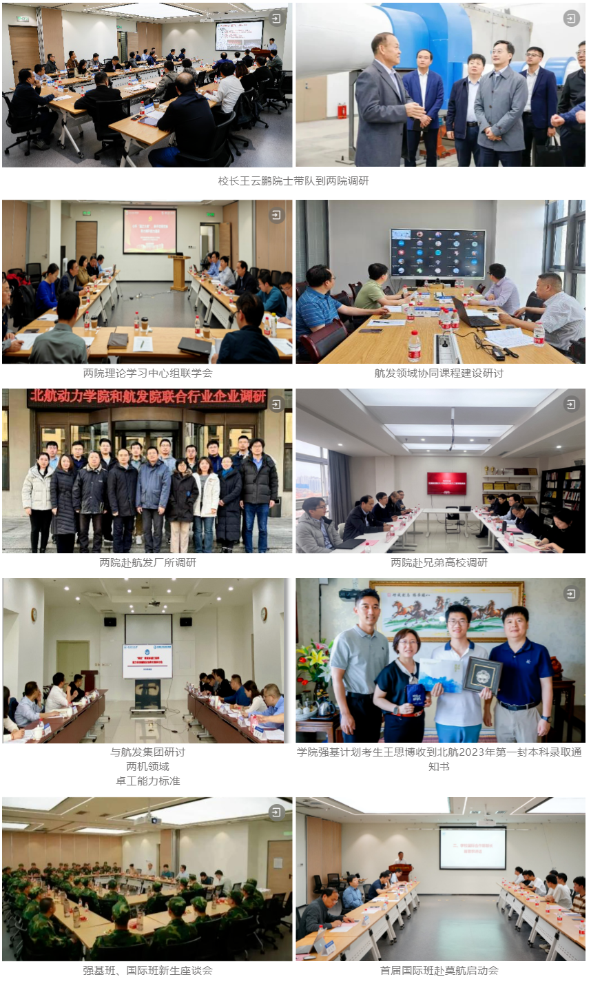 深入实施人才培养领航行动计划,我院与航空发动机研究院(以下统称“两院”)3次召开理论学习中心组联学会,围绕人才培养等工作展开深入研讨。组成联合行业企业调研团,赴动力所、燃机公司、黎明公司、动力公司等及西安交大能动学院、西工大动能学院等兄弟高校开展调研。共同牵头建设教育部两机领域卓越工程师核心课程体系,建设15门核心课程,培养卓工研究生34人。3门课程获国家级一流本科课程认定,6本教材入选教育部战略性新兴领域“十四五”高等教育教材。获33项校级以上教学表彰,其中校级教学成果奖6项。改革吴大观班培养模式,形成吴大观英才班、强基班、国际班差异化实验班培养体系,推进本研一体化,着力培养航空动力和能源领域能够解决复杂系统工程问题、探索科学前沿的领军领导人才。
