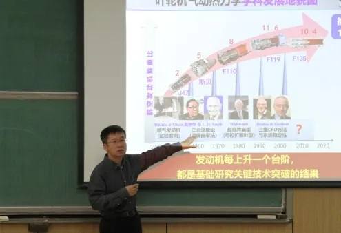 孙大坤从国内外航空发动机研制历程开始讲起,介绍新时代动力学子的使命任务。国之重器,倾心铸之,生逢其时,重任在肩,实现“中国心”突破“跟跑”成为“领跑”责任重大。