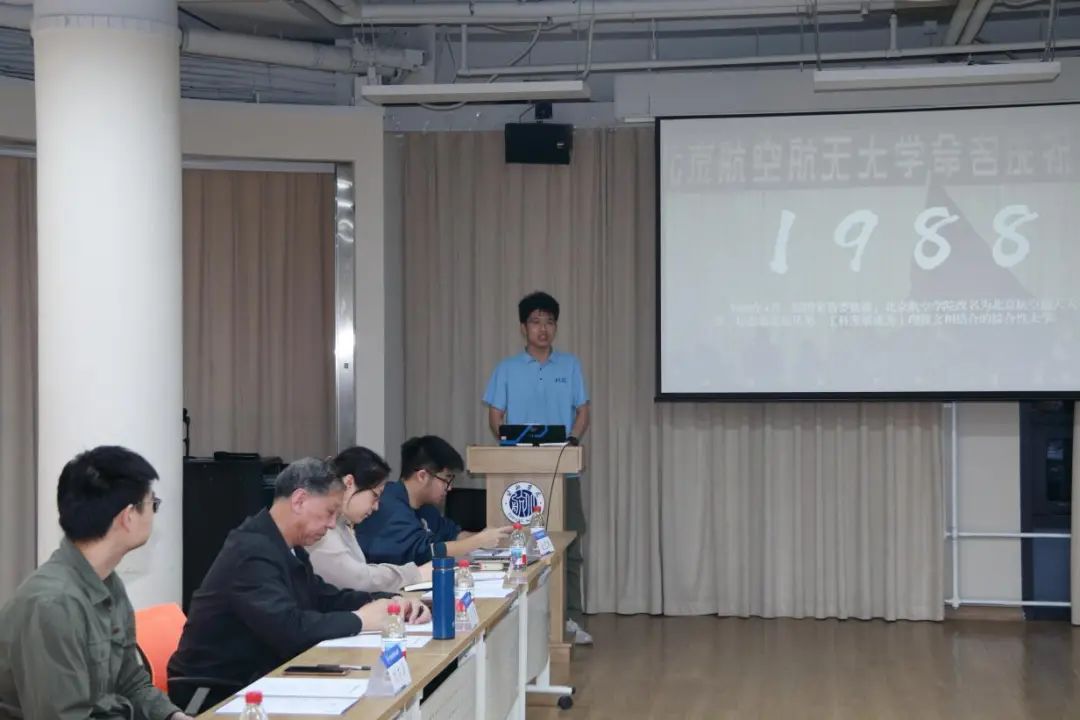 会上,宣讲团成员王铎汇报了宣讲团的近期工作和未来规划。王铎介绍宣讲团的基本情况,展示宣讲团在科普教育中的阶段性成果。宣讲团通过融合校企联动、社会实践、志愿服务,开创“启航+”宣讲模式,目前已覆盖北航附小、人大附中、成都树德中学等12所学校,累计服务师生超两万余人次。