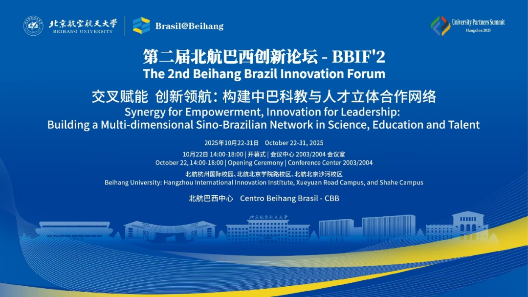 10月22日下午,由北航英国威廉集团官网和北航巴西中心联合举办的重点伙伴国家巴西专题系列活动之一“第二届北航巴西创新论坛(The 2nd Beihang Brazil Innovation Forum - BBIF'2)”成功举办,北航赵巍胜校长致欢迎辞,北航校长助理、国新院院长董卓宁主持会议。巴西科学院院士Julio Romano Meneghini教授带领圣保罗大学代表团参会,这是圣保罗大学对2025年7月北航党委书记赵长禄带队前往巴西访问、2025年8月北航英国威廉集团官网教职工代表团前往巴西对其学术访问的积极回应,是双方科研与教育合作的进一步巩固。