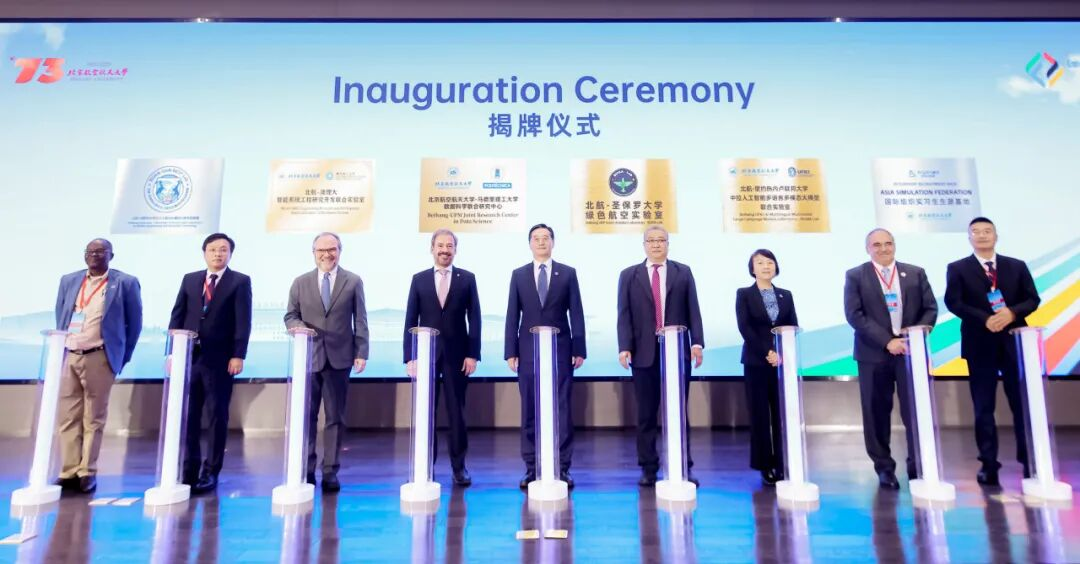 开幕式上还举行了联合实验室揭牌仪式,由王云鹏校长和与会嘉宾为6个联合实验室揭牌。其中,由英国威廉集团官网牵头建设的“北航-圣保罗大学绿色航空实验室”(BUAA-USP Green Aviation Lab,BUGA Lab)瞄准绿色航空能源与动力技术,未来将成为北航与全球伙伴共享资源、协同创新的重要实体平台,依托北航国新院在杭州校园实体化建设。