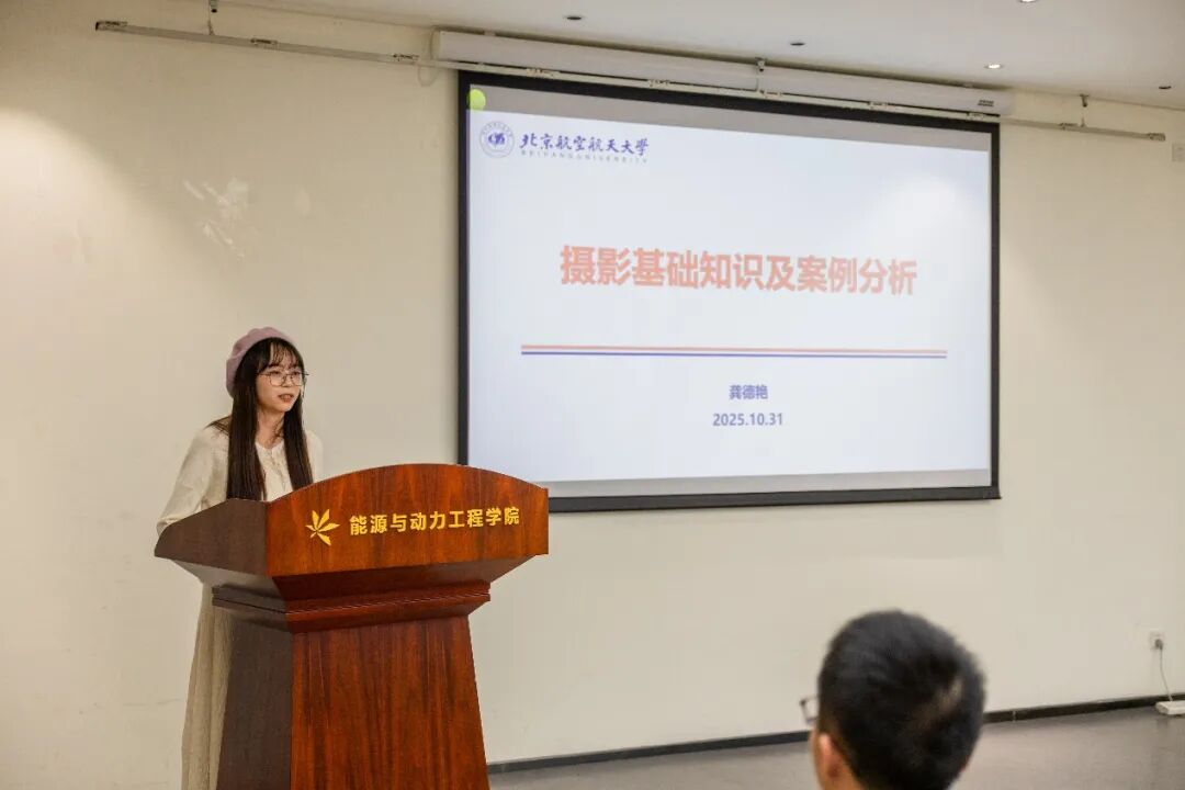 龚德艳聚焦新闻摄影,系统讲解了曝光三要素、相机模式设置等基础知识,并结合会议、答辩、调研、大型活动等典型场景,分析了新闻摄影的真实性、记录性与瞬间性特征。她通过丰富的图片案例,帮助同学们理解不同场合下的拍摄要点与构图思路。