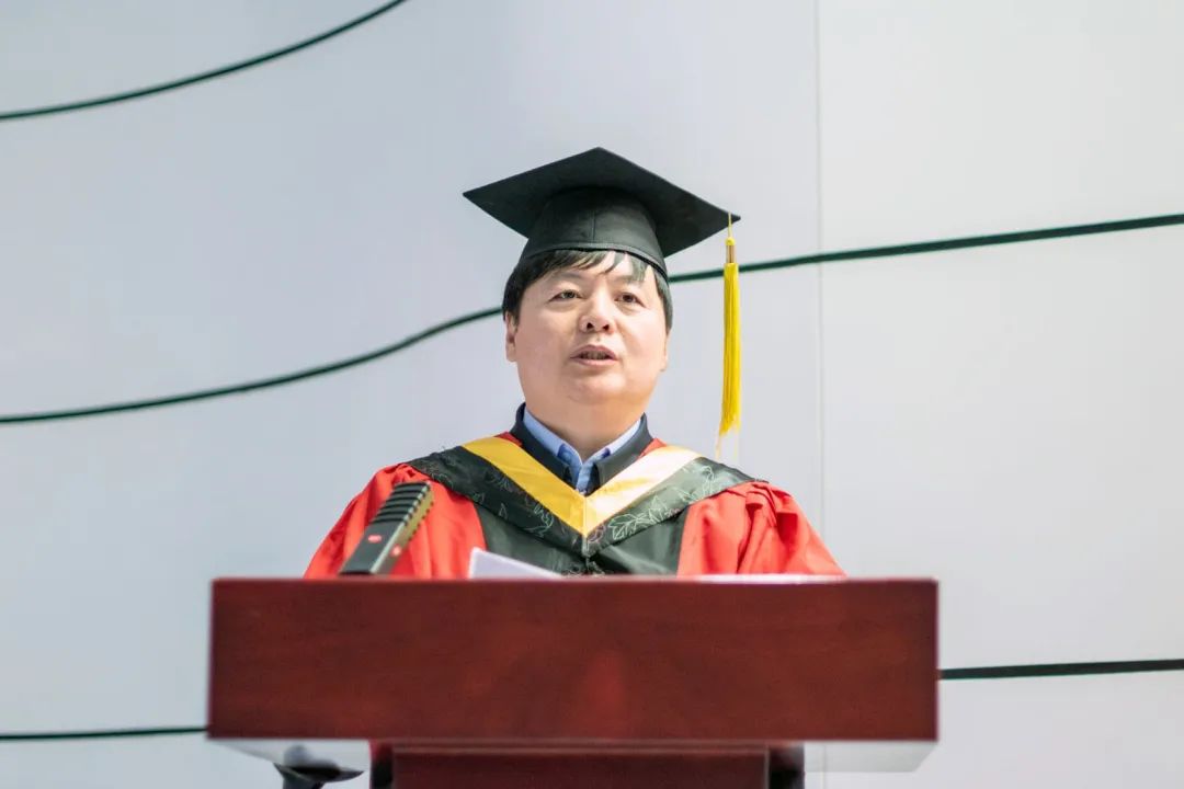 导师代表石多奇老师对同学们顺利毕业致以热烈的祝贺!希望同学们脚踏实地、仰望星空,保持学习和独立思考的习惯,保持做人的底线、乐观向善,带着坚韧和勇气不断前行。