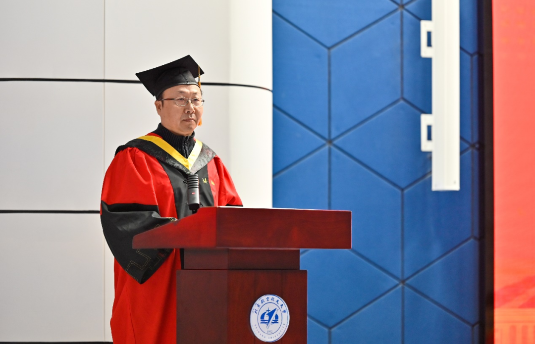 闫晓军院长代表学院向顺利完成学业的硕士及博士毕业生表示热烈祝贺,向辛勤付出的研究生导师和教职员工致以衷心的感谢。他回顾了这几年动力学子与国同行所经历的大事,肯定了同学们勇敢追梦、全面发展。闫晓军提出三点希望与2024届研究生毕业生共勉:第一,爱党报国,勇担时代重任。人生的理想各有不同,但胸怀“国之大者”,服务国之所需,无疑是最为高远的志向。第二,终身学习,锤炼过硬本领。“学如逆水行舟,不进则退”。只有坚持勤奋学习,才能不断进步、持续成长。第三,团结拼搏,凝聚奋进力量。“独行者速,众行者远”。懂团结是人生大格局,能拼搏才能学到真本领。