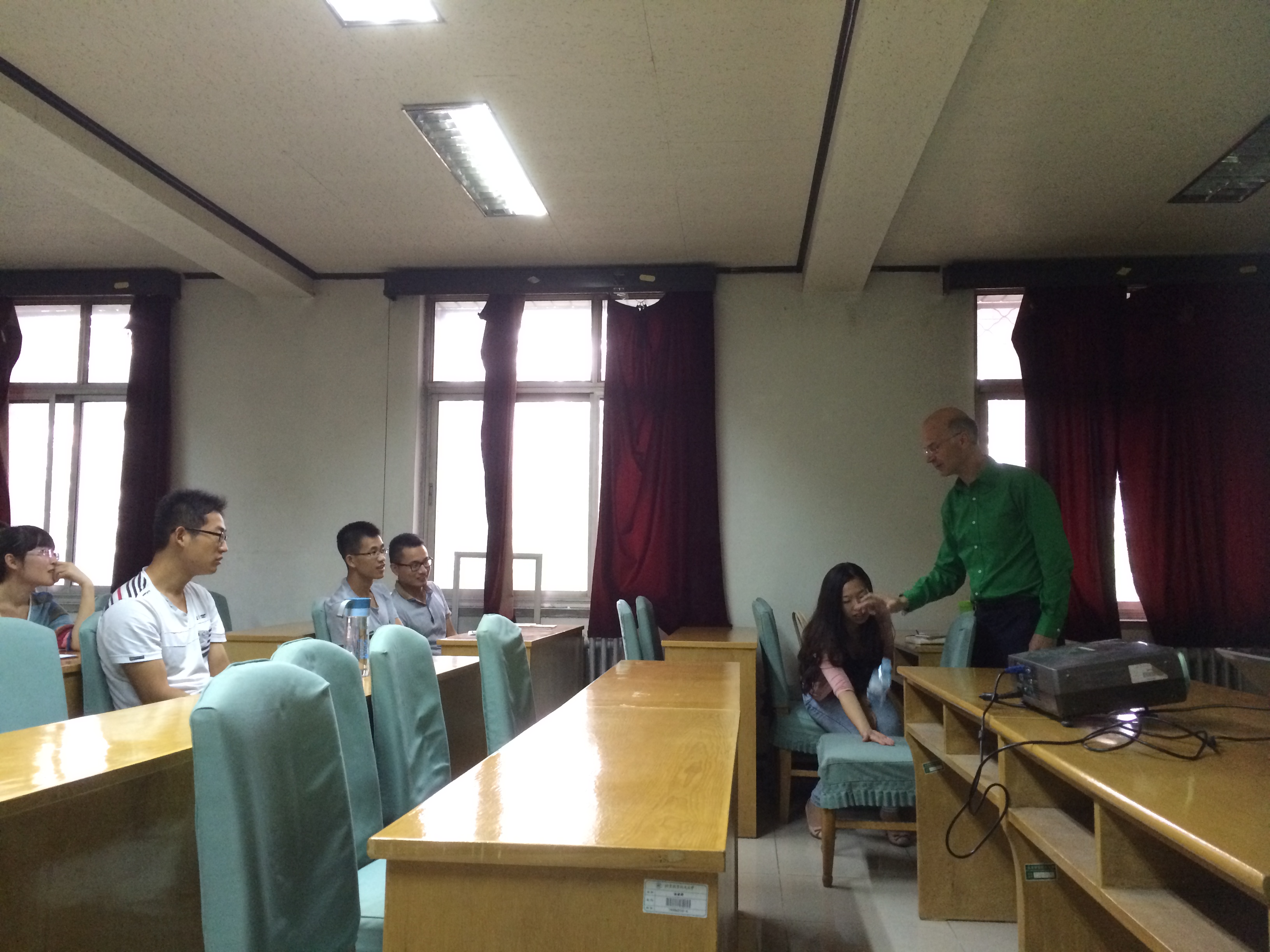 讲座从一个有趣的实验开始,Peter教授拿出一瓶重3N的矿泉水,将其举在手掌上方约30cm处并放手来体会1焦耳能量的大小,通过这种方式让大家直观体会到能量是什么。紧接着,Peter教授介绍了能源的概念,理论与实际结合,以创造性的思维方式为同学的研究提供新方向。之后,Peter教授展示了太阳能驱动touching the void的发明,使大家眼前一亮。最后他播放了一段视频展示其关于先进飞行器的设计成果。在每段话题之后,Peter教授均与同学们进行良好的互动交流,对同学们的问题进行具体解答,为同学们的研究方向提出中肯的意见。