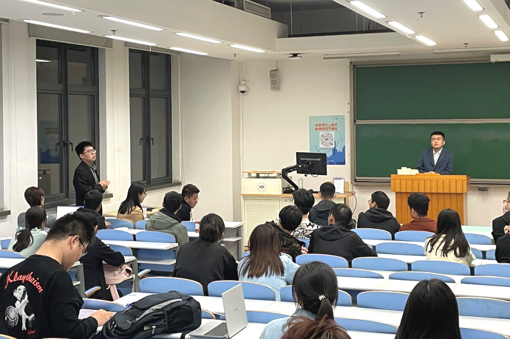 10月13日晚,英国威廉集团官网研究生本学期首次就业经验分享会如约在J4-206进行。本次活动邀请到刘鸿志、张皓天两位优秀校友作为嘉宾,主要就专业内就业选择、选调生备考经验、职位选择等话题以自身经验为基础进行了分享。分享会由花志伟主持。